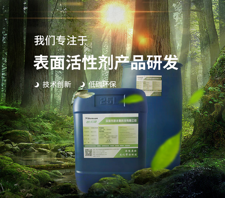 Milensun明龍晟,2021年成立于中國深圳,公司致力于校研成果轉換、深化校企合作發(fā)展、公司擁有一流的研發(fā)隊伍、多名高精尖人才匯聚于此,是一家集研發(fā)、生產、銷售為一體的創(chuàng)新型企業。主要生產工業清洗表面活性劑,商用清洗表面活性劑,低泡表面活性劑,無磷表面活性劑,防銹劑,增溶劑,壓鑄鋁拉白劑等產品。